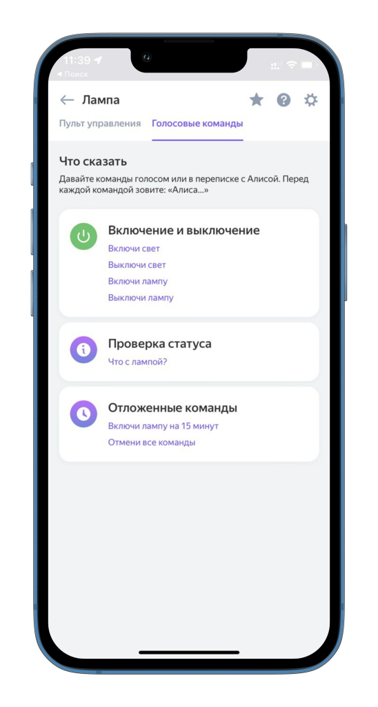 — Включение или выключение устройств (свет, розетки, колонки).