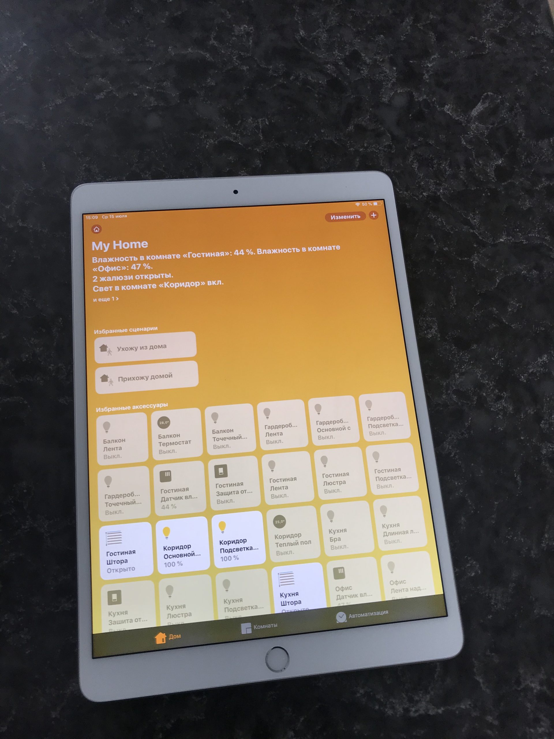 - Управление освещением. Зачем самому включать свет, если он может загораться, когда Вы входите в комнату? Более того, яркость можно настроить под настроение или время суток.