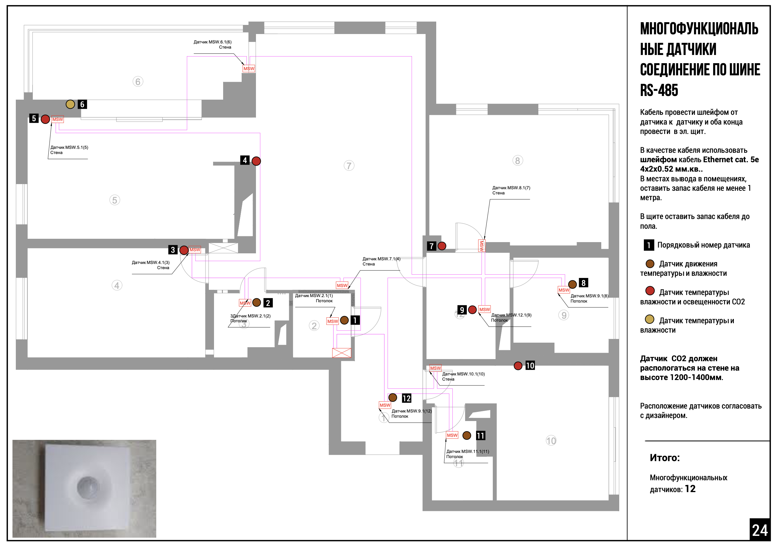 Возьмите обычный план помещения. Нанесите на него все точки установки. Это похоже на расстановку мебели. Только вместо диванов — датчики движения.