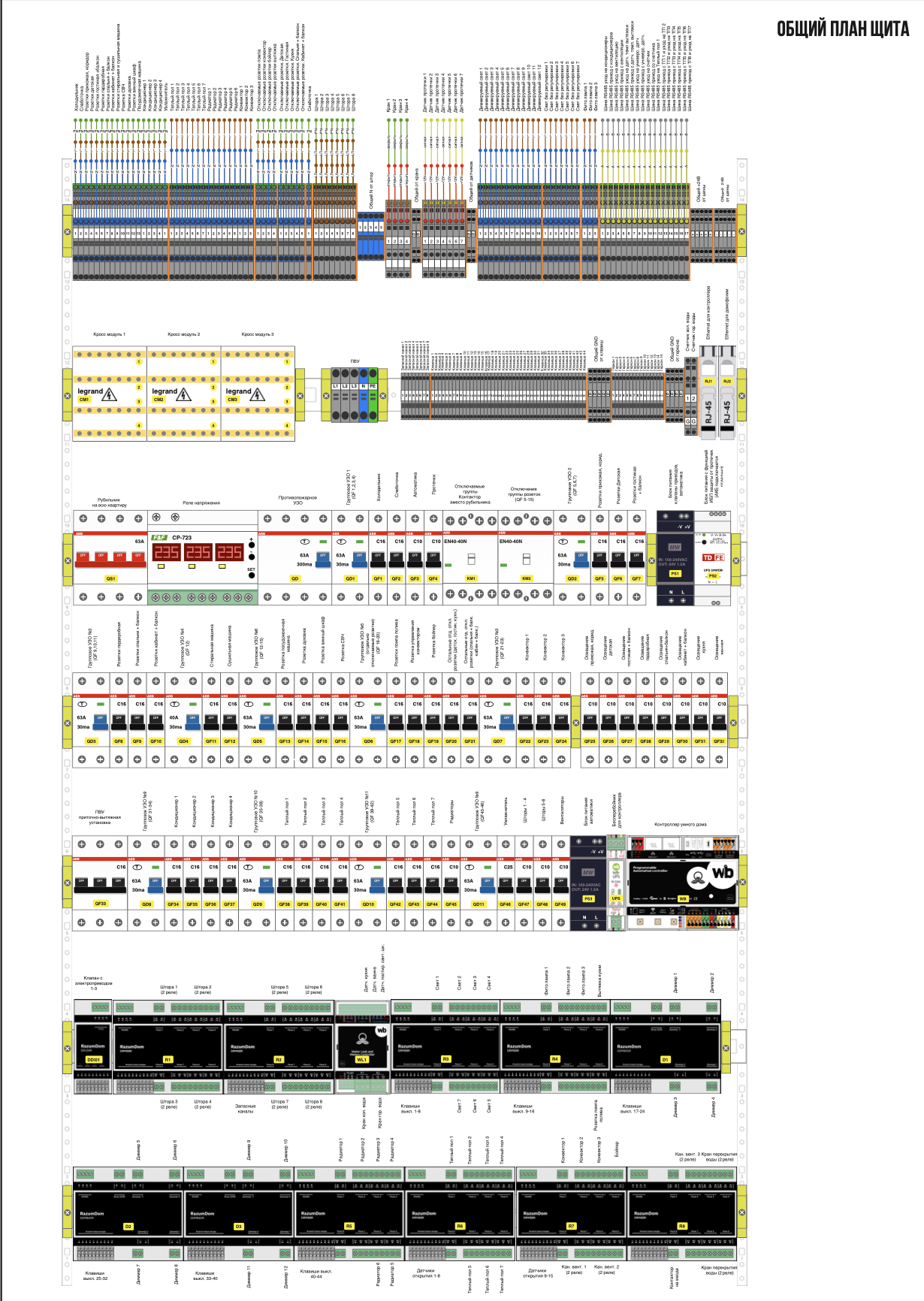 Лист 12. Однолинейная схема электрощита. Все автоматы, линии, контроллер.